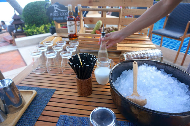 For happy hour, the hotel hosted a little class where they taught us how to make some cocktails. We were given a lesson in pina coladas, which I loved because that's definitely my favorite beach cocktail. We added loads of ice to a shaker with some dark rum, coconut cream, simple syrup, and pineapple juice and shook it all up. It was so simple but so delicious.